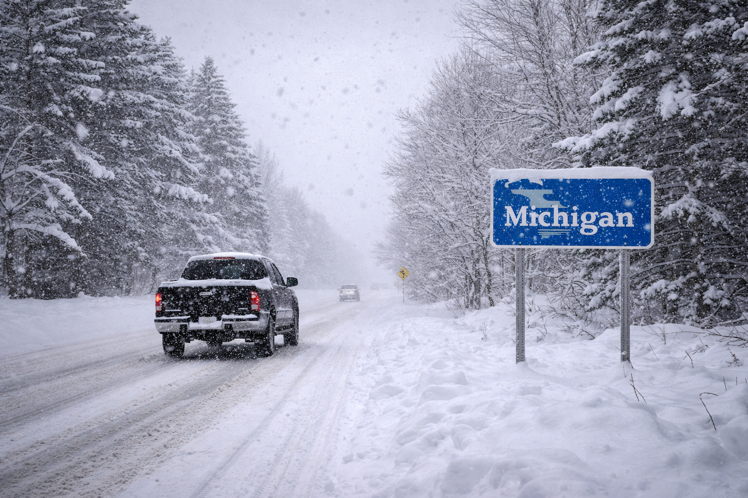 In Michigan gibt es keine Winterreifenpflicht, obwohl die Winter sehr schneereich sein können.