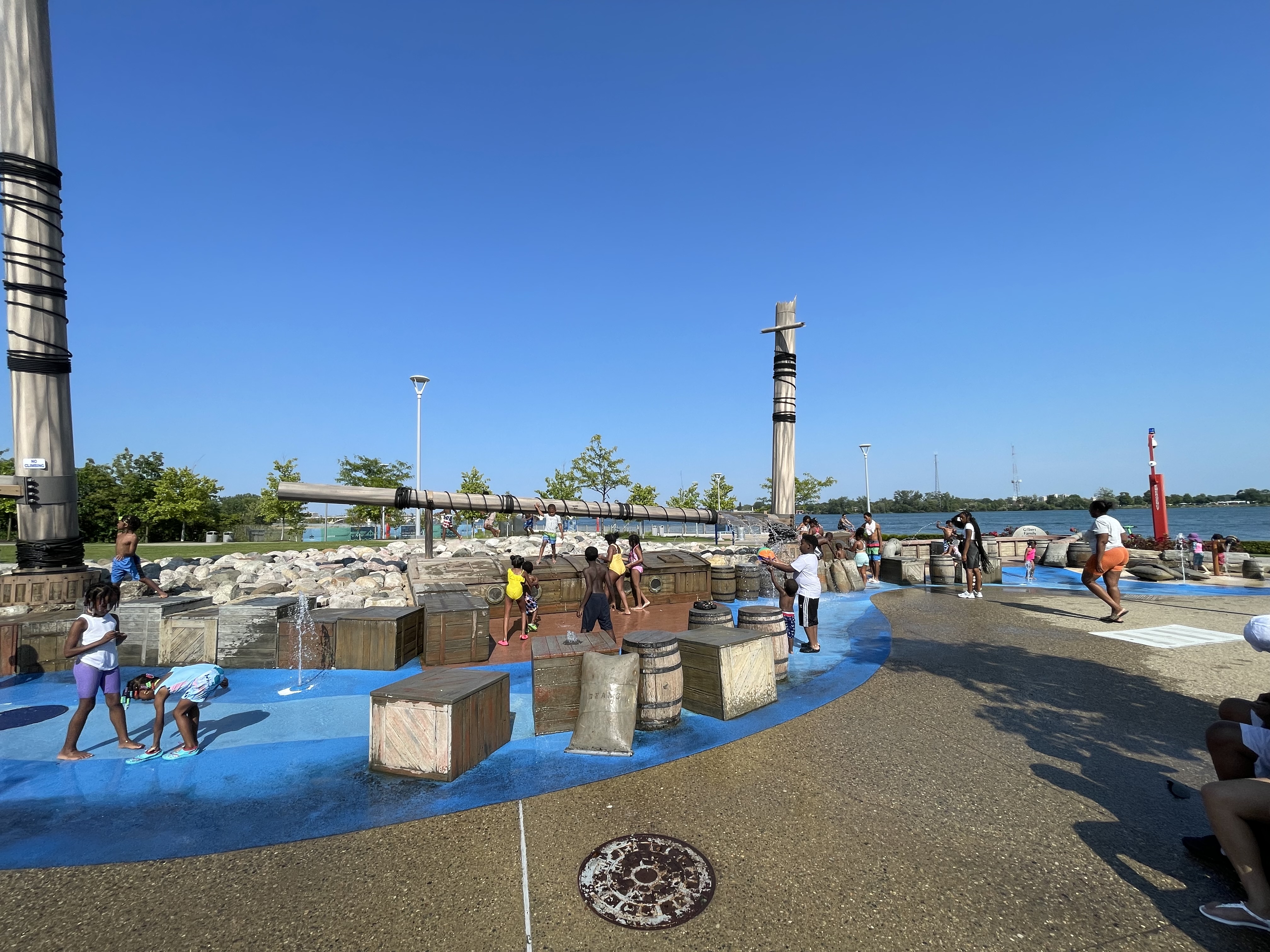 Splash Pads sind in den USA – und besonders in Metro Detroit – sehr verbreitet und gehören für viele Familien fest zum Sommer dazu. In dieser Form und Vielfalt kennt man sie aus Deutschland kaum: große, offene Wasser-Spielbereiche mit Fontänen, Sprühdüsen und interaktiven Elementen, die meist kostenlos zugänglich sind.